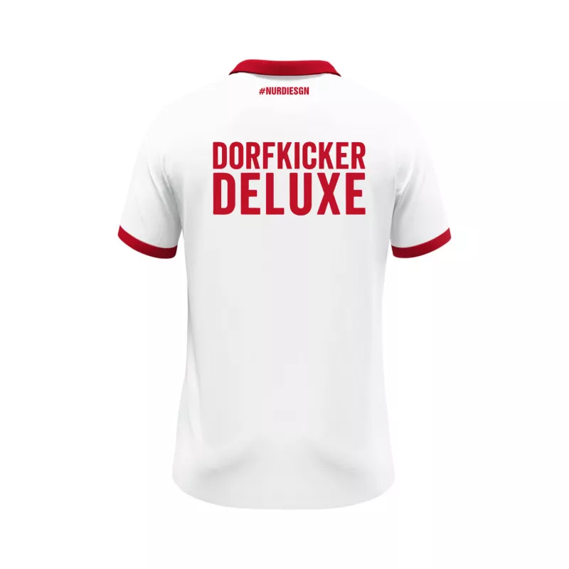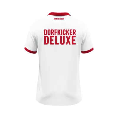 Auf der Vorderseite prangt das Vereinslogo mit Gründungsjahr 1911 sowie das unverkennbare Bergbau-Symbol – ein klares Bekenntnis zur Heimat. Die Rückseite überzeugt mit dem markanten Schriftzug „DORFKICKER DELUXE“ und dem Hashtag #NURDIESGN im Nackenbereich.